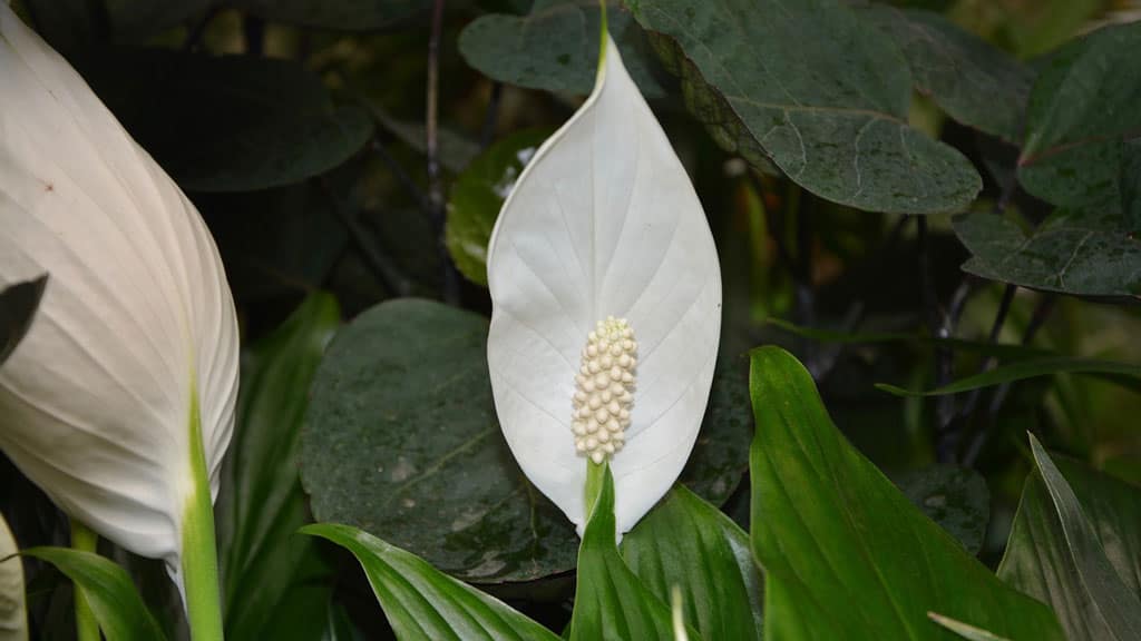Spathiphyllum. Wenn der Strauch einen ungewöhnlichen Stiel mit einer in eine schneeweiße Decke gehüllten Maiskolben hervorbringt, dann bleibt er lange stehen. Und bei guter Pflege blüht ein üppiger Strauch mehrmals pro Saison. Allerdings sollte Spathiphyllum am Ende des Herbstes eine Ruhepause bekommen.