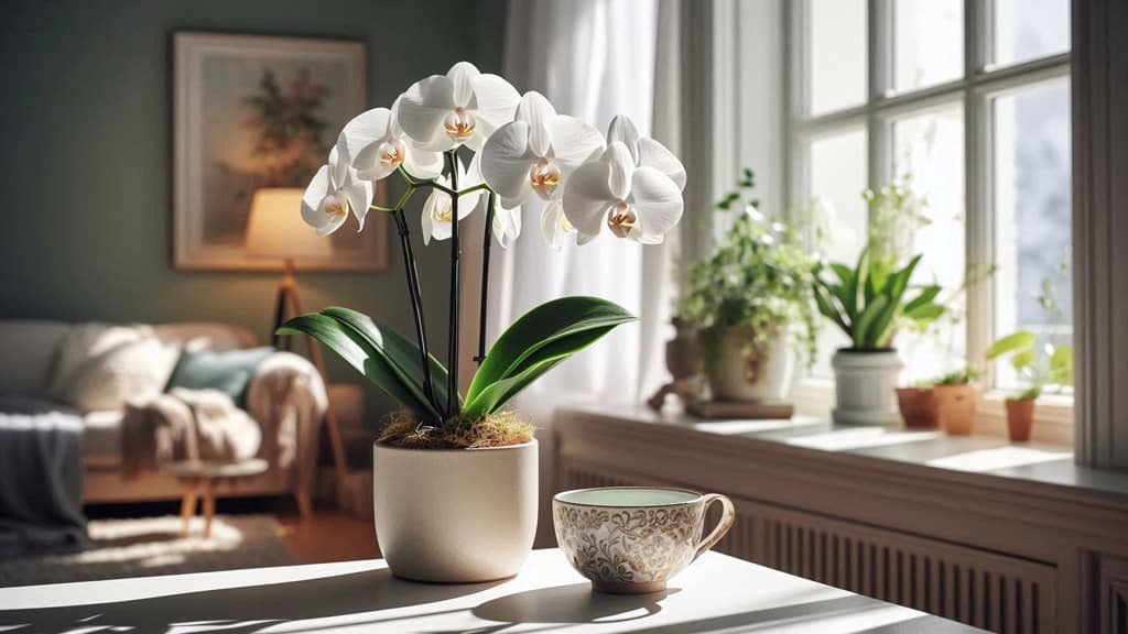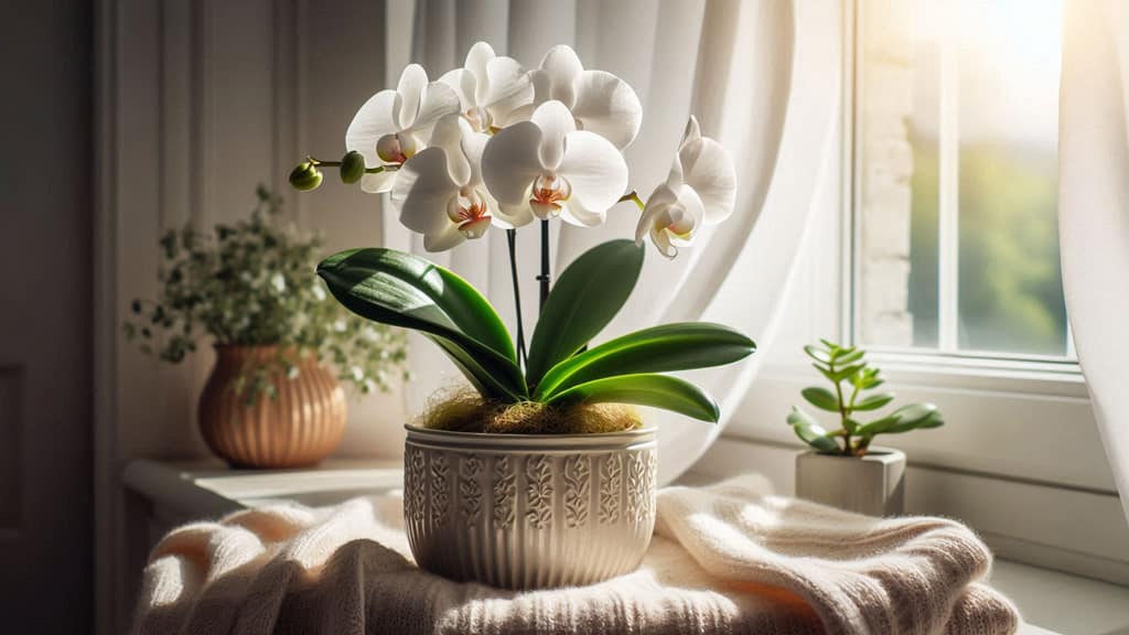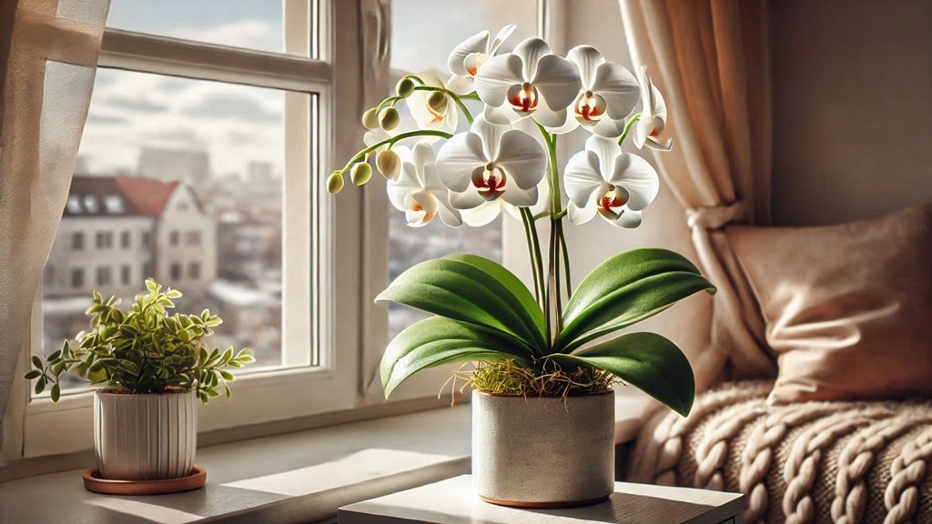 Orchids need warm and humid air (ideally around 25°C with 60-80% humidity). It is strictly forbidden to put the pot in draughts. Regular spraying or using a humidifier will help to solve the problem of dry air during the heating season.