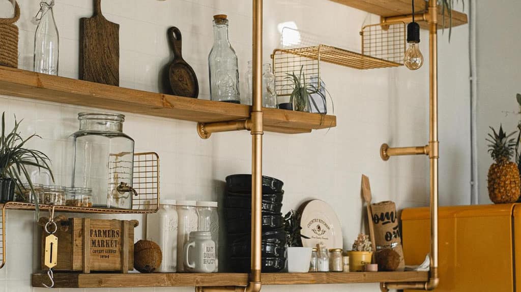 Attach a shelf like this to one of your cupboard shelves: it won’t hold much weight, but it’s great for storing container lids.